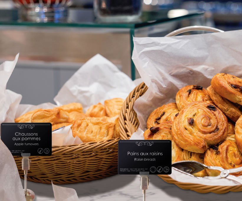 - Aidez vos clients à effectuer un choix rapide et éclairé en mettant à leur disposition toutes les informations sur un support unique. Vous fluidifiez ainsi l'affluence aux buffets pour une expérience client améliorée.